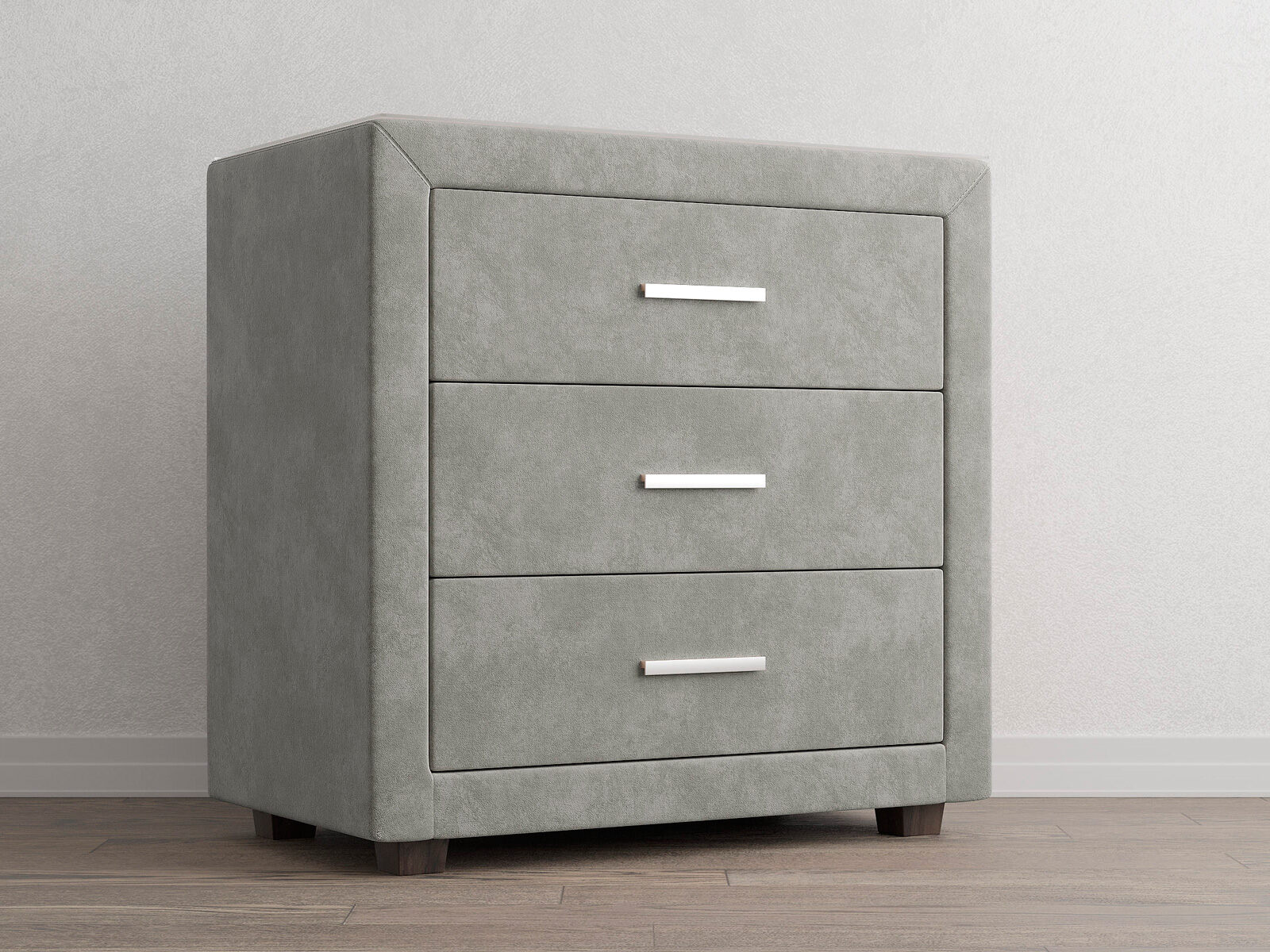 Элегантный комод отличается стильным дизайном и повышенным удобством. Три выдвижных ящика оснащены надёжными направляющими, обеспечивающими лёгкое открытие. Фасад ящиков и стенки комода покрыты обивочным материалом.
