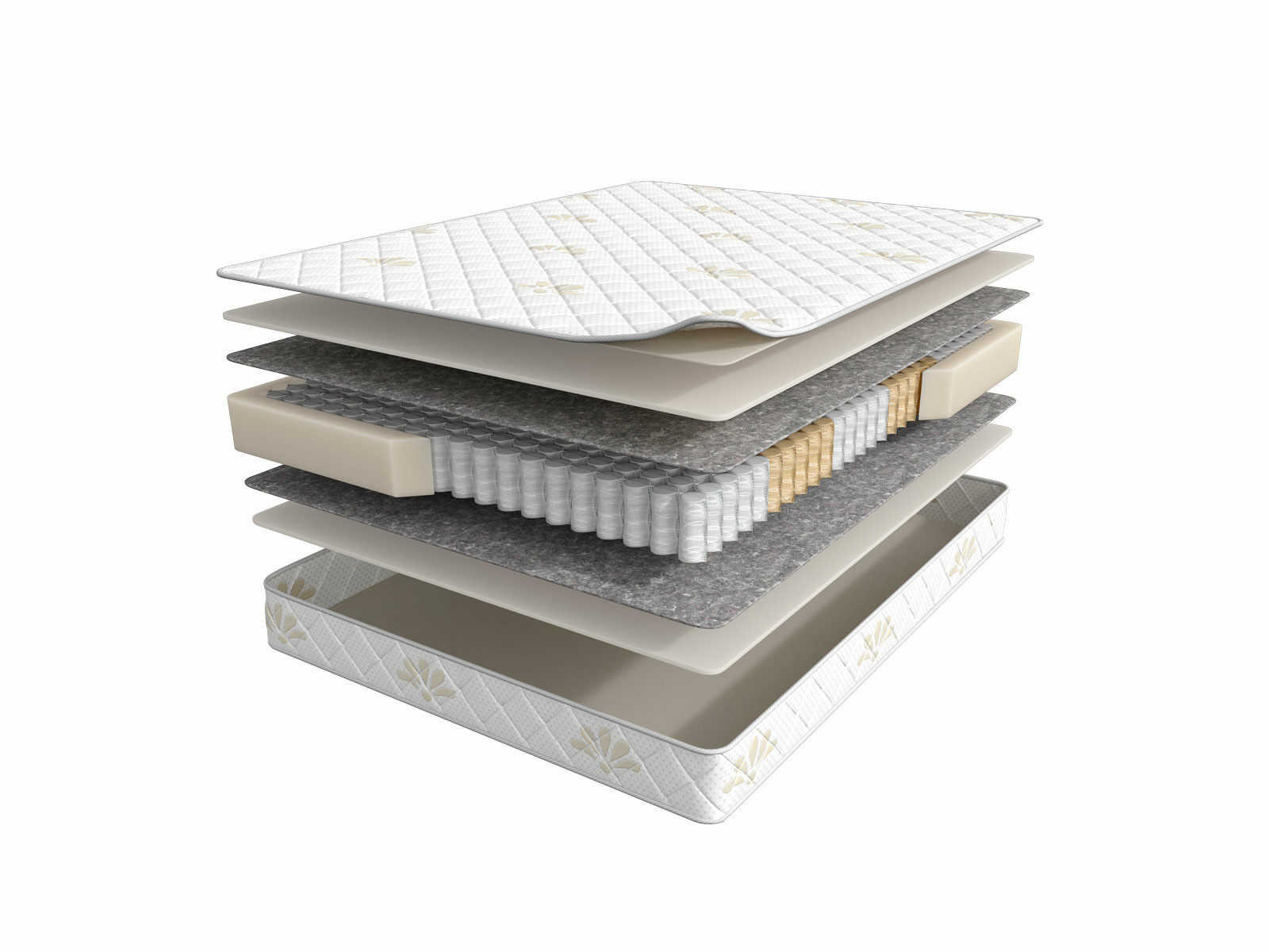 В основе модели установлен улучшенный 5-зональный пружинный блок повышенной упругости и индивидуальной точечной поддержки. Каждая пружина находится в отдельном чехле из плотного нетканого материала, отдельные пружины не связаны между собой.