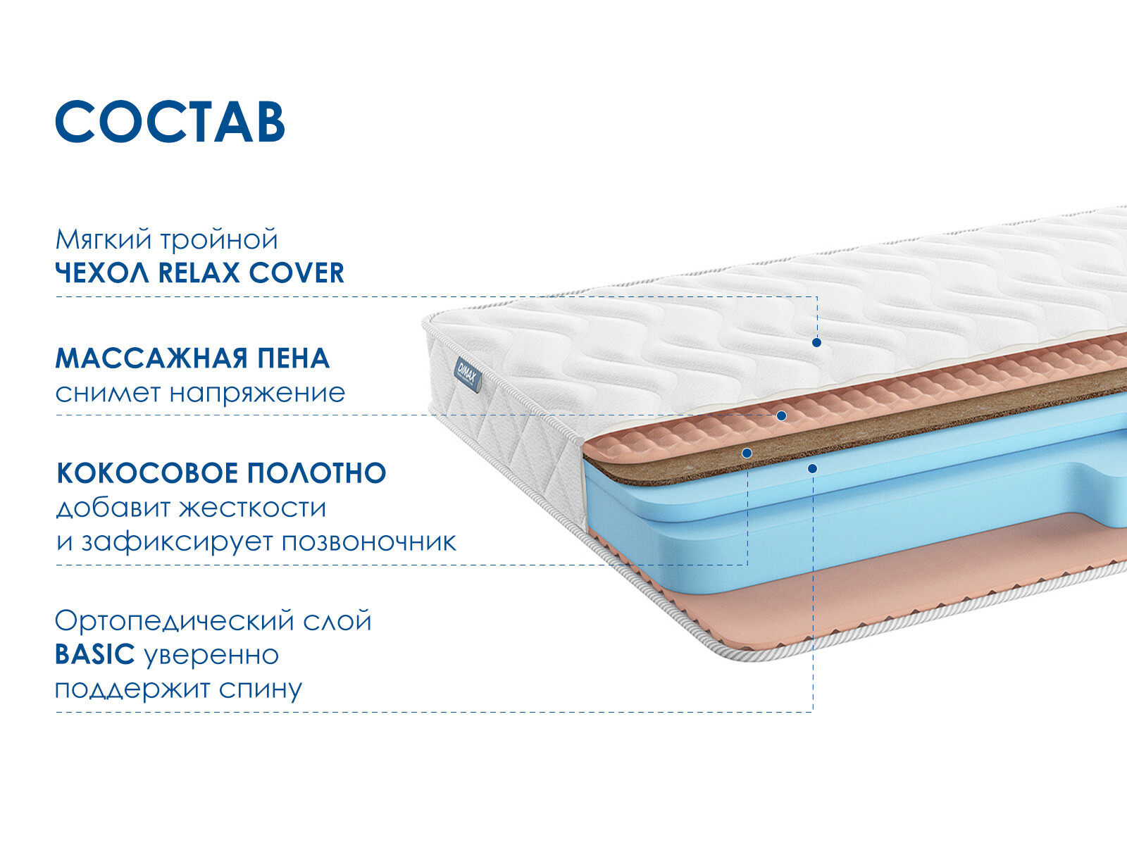 При покупке любого матраса Dimax получите подушку «Молли» в подарок, а за двуспальный – сразу две.