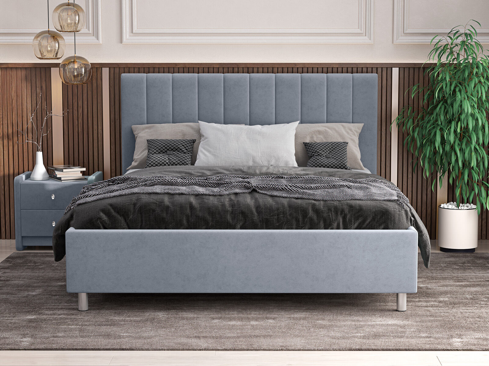 Кровать Лероса отличается универсальным дизайном, позволяющим легко сочетаться со множеством стилевых направлений. Ее изголовье оригинально оформлено вертикальными панелями, которые добавляют выразительности и придают дополнительный объем модели.