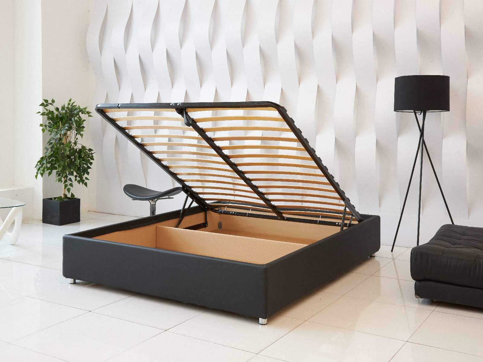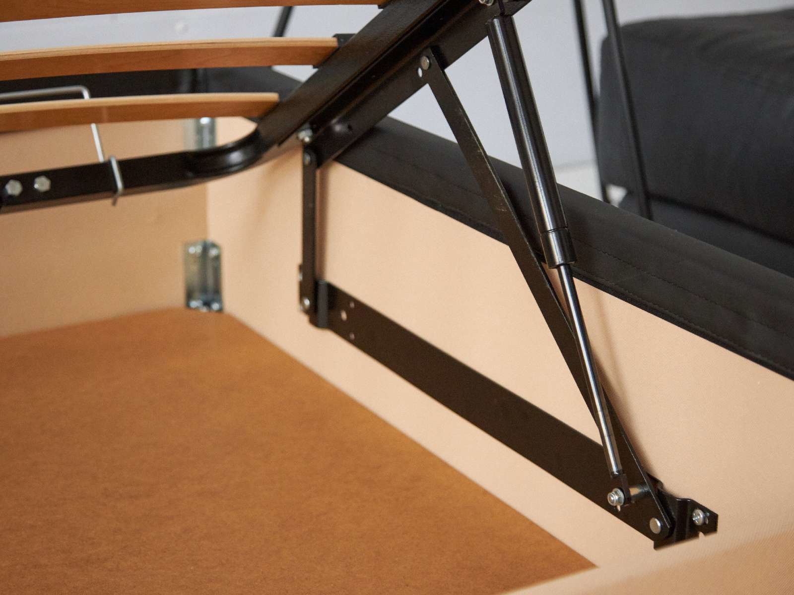 В комплект к кроватному боксу изготавливается основание с подъёмным механизмом и коробом для хранения белья и других вещей. Такое решение позволит сэкономить пространство.