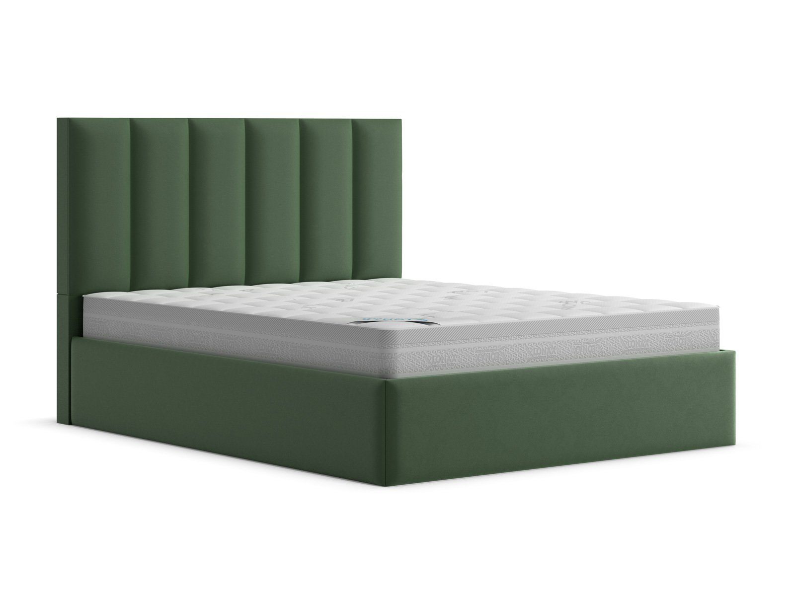 Мягкая кровать с обивкой из велюра.