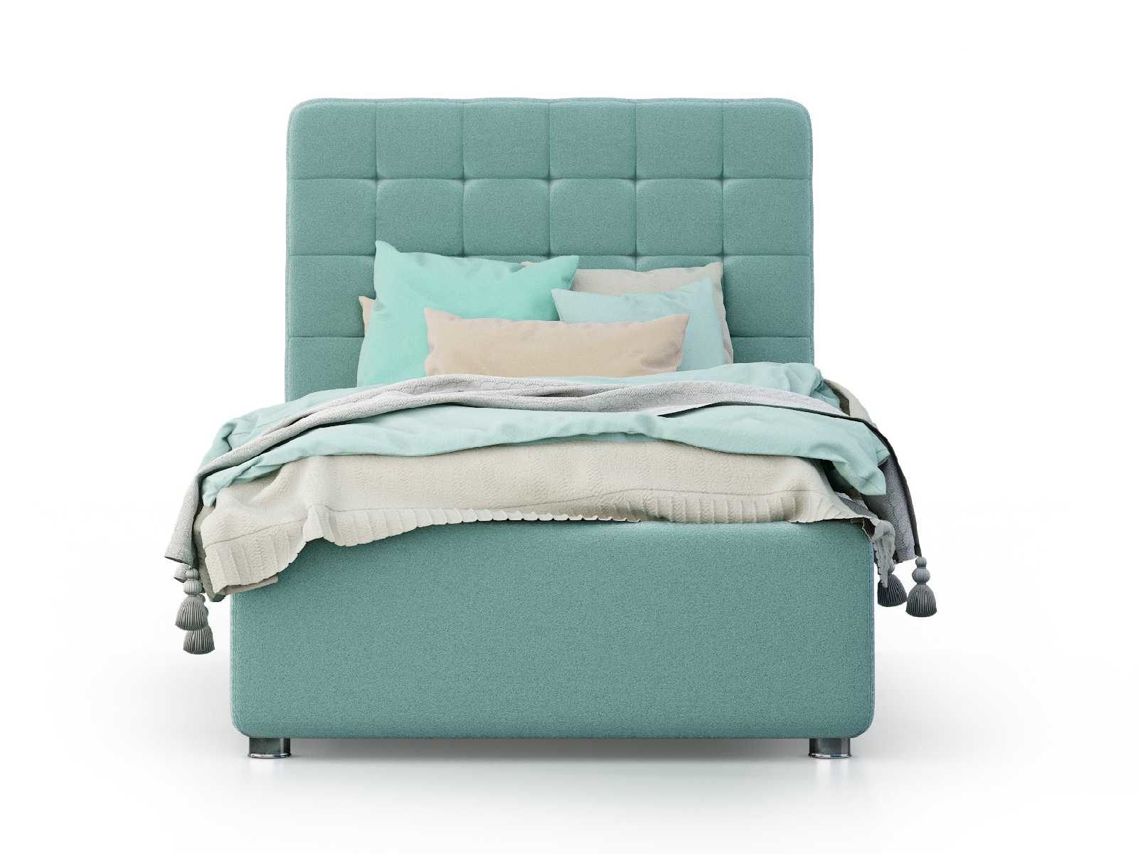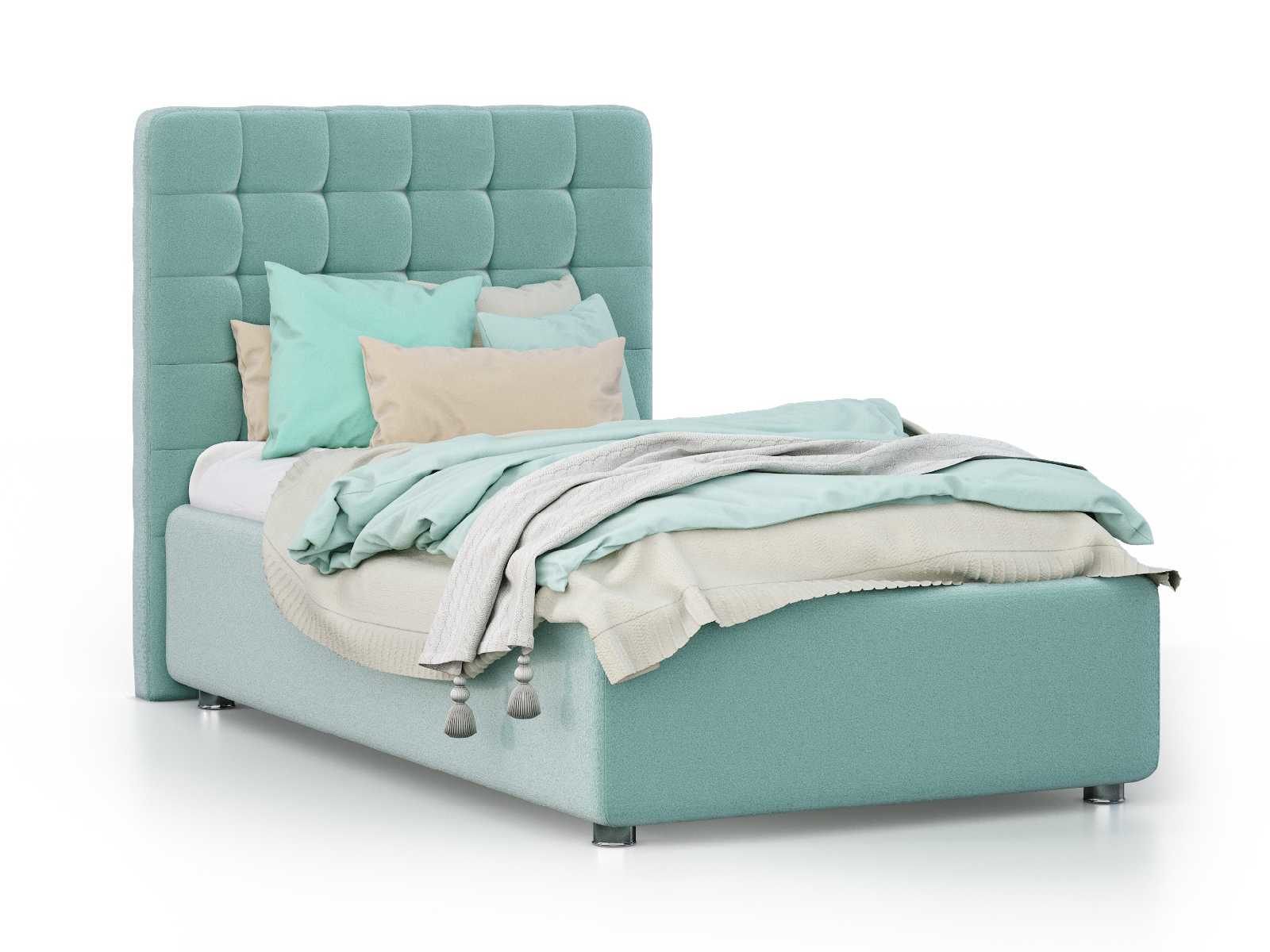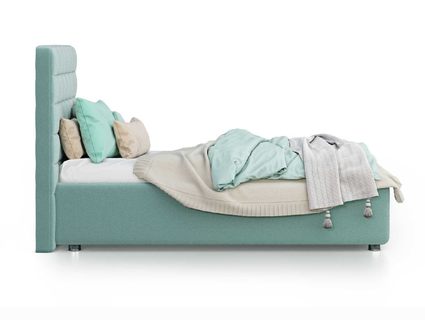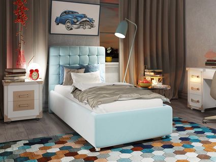 Односпальный вариант мягкой кровати Vita с высоким изголовьем для детей, подростков и взрослых. Изголовье имеет скругление на углах и декорировано стежкой с утяжками в виде небольших квадратов. Для придания особой изысканности и шарма изголовье можно декорировать пуговицами или стразами (платная опция).