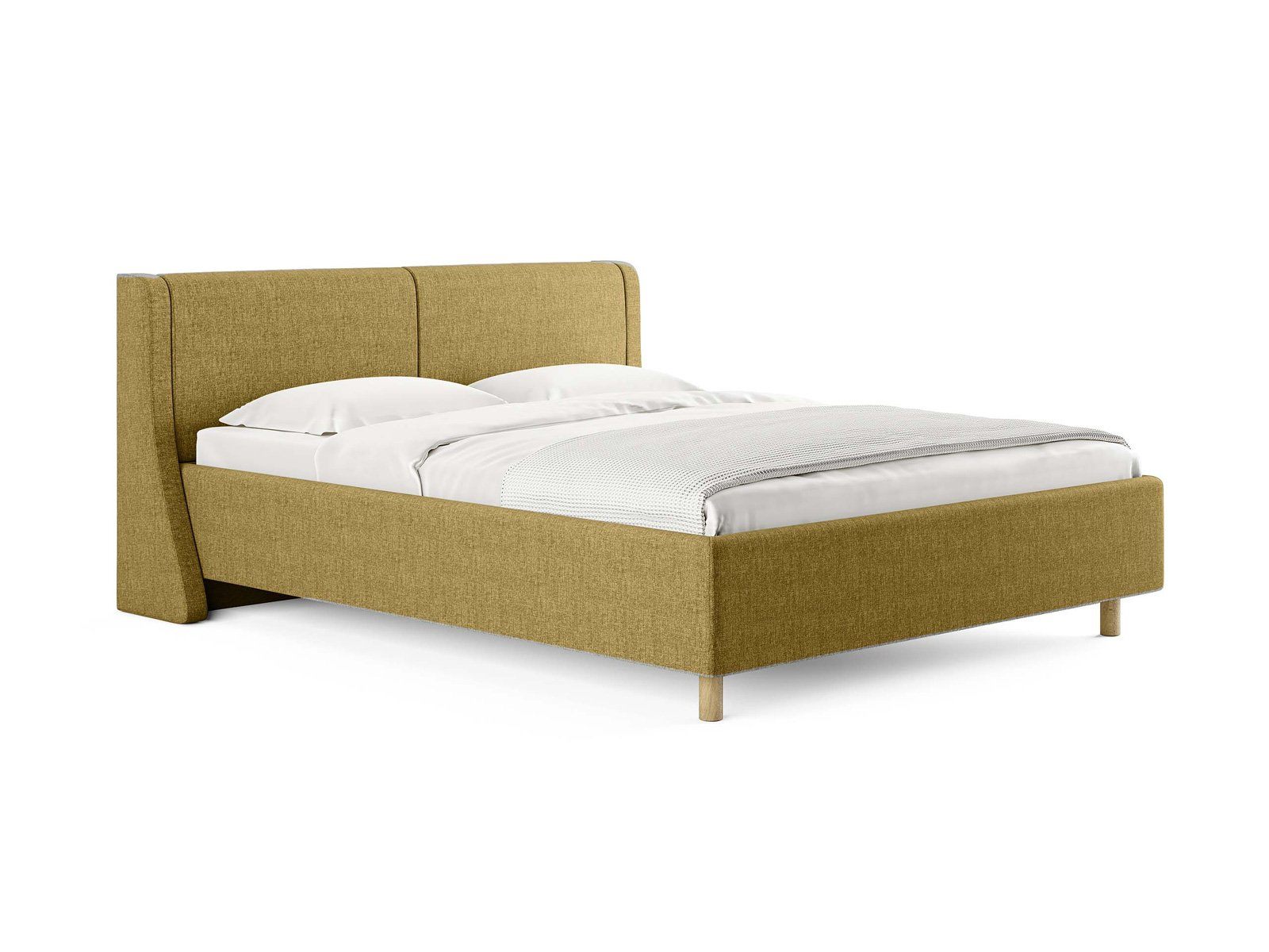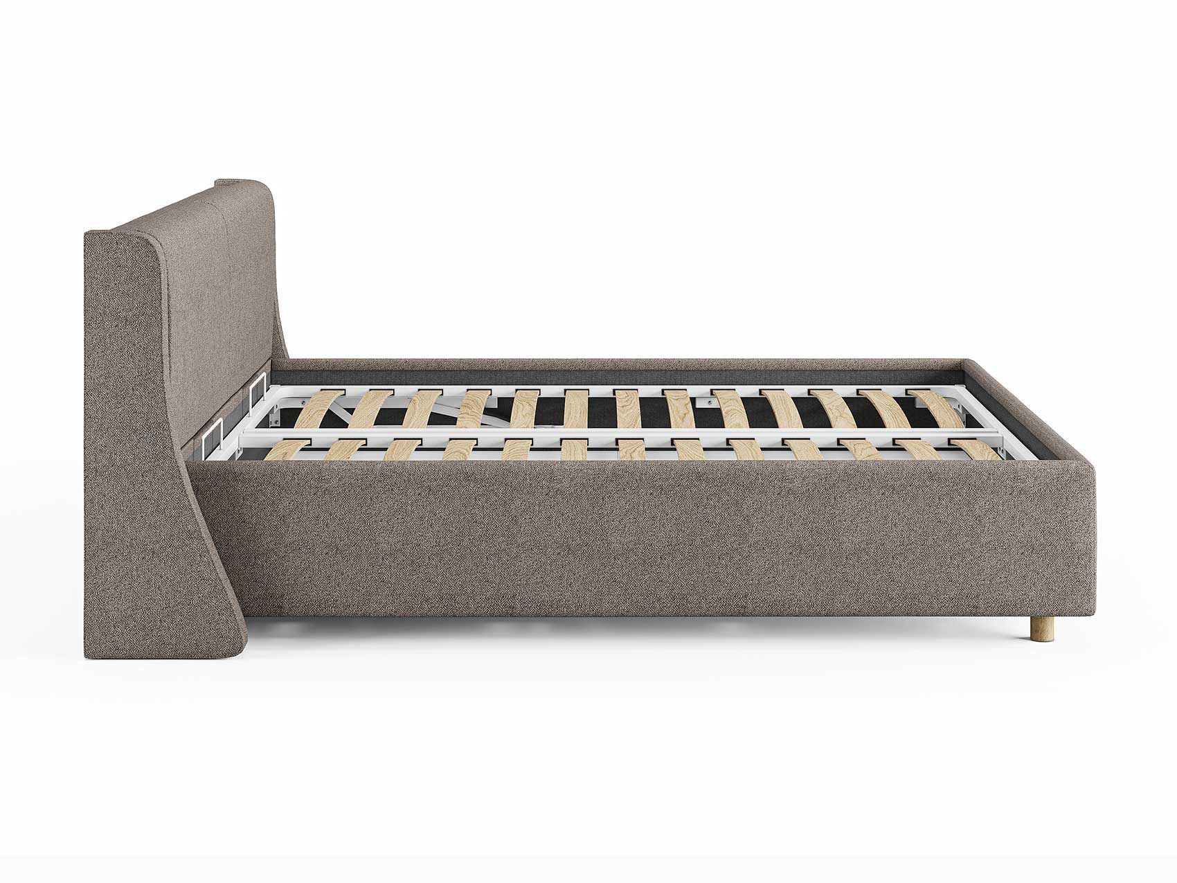Кровать Barcelona подойдет для современных интерьеров спален, а благодаря деревянным ножкам впишется в стиль ретро, скандинавский или минимализм.