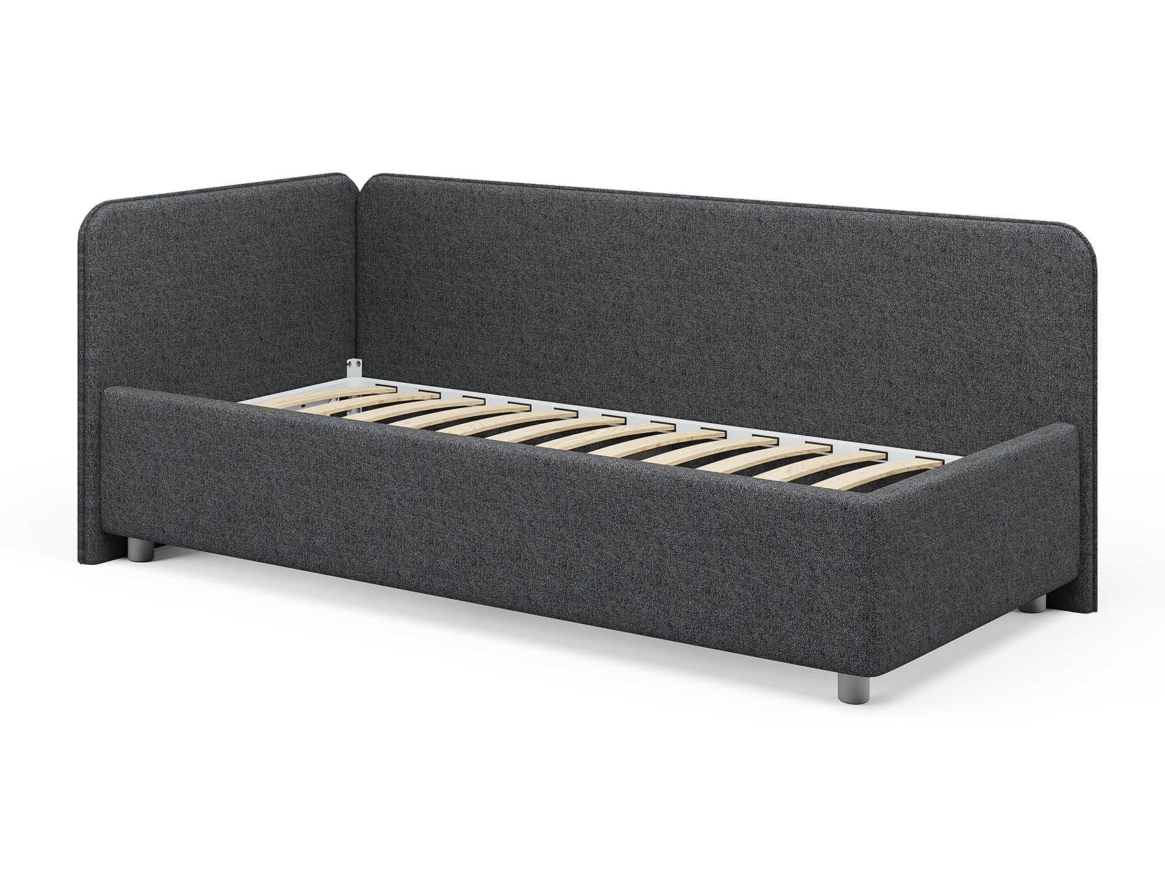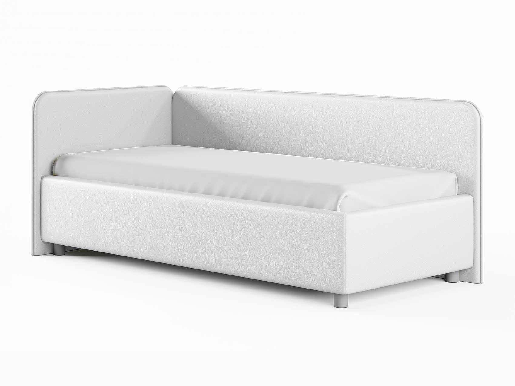 Односпальная кровать в современном стиле. Кровать-софа с одной боковой спинкой. Идеально подходит для квартир с небольшой площадью, детских и подростковых спален, гостевых комнат. Боковую спинку кровати можно изготовить на выбор на правую или левую сторону. Модель изготовлена из ДСП.