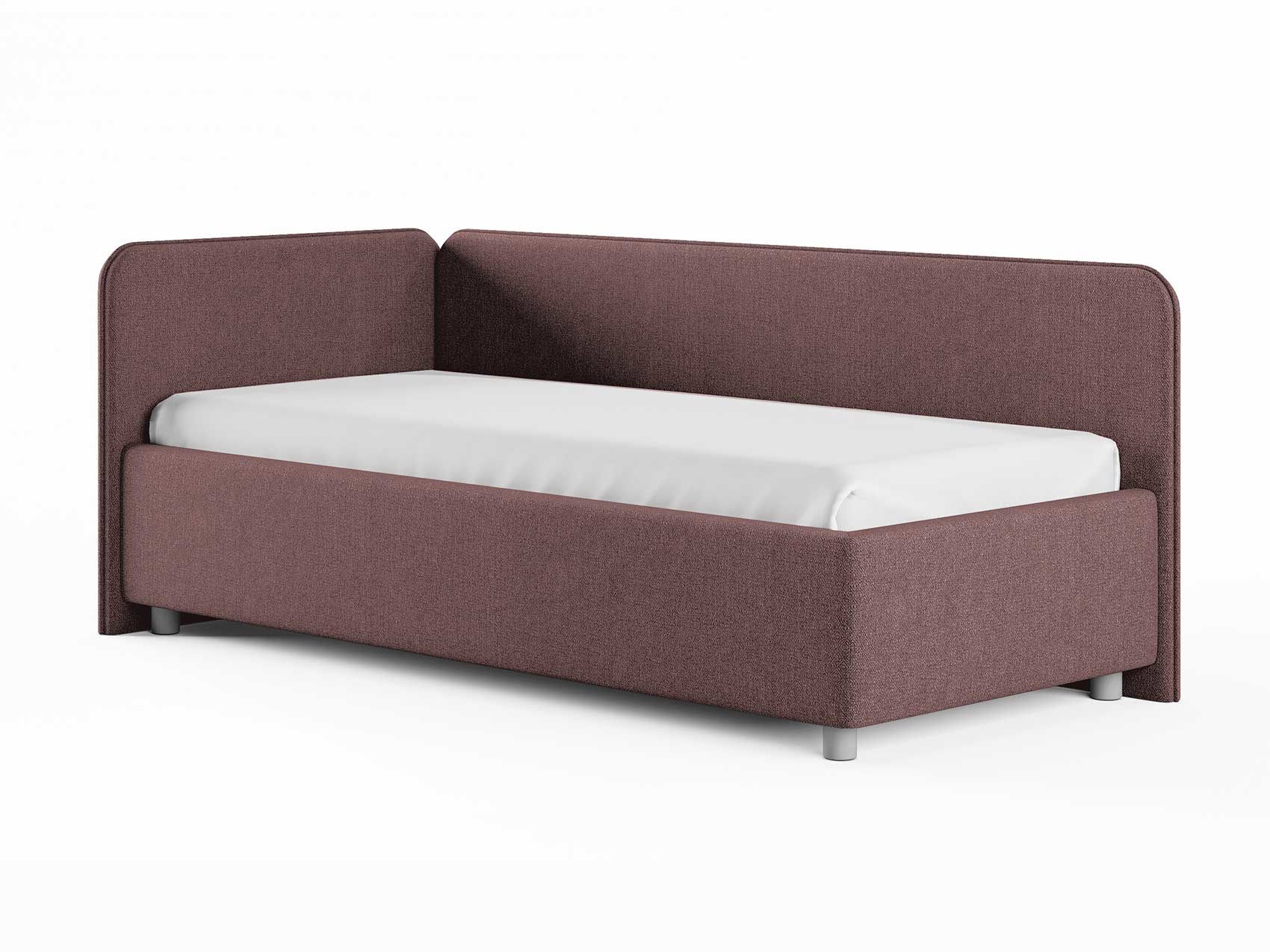Односпальная кровать в современном стиле. Кровать-софа с одной боковой спинкой. Идеально подходит для квартир с небольшой площадью, детских и подростковых спален, гостевых комнат. Боковую спинку кровати можно изготовить на выбор на правую или левую сторону. Модель изготовлена из ДСП.