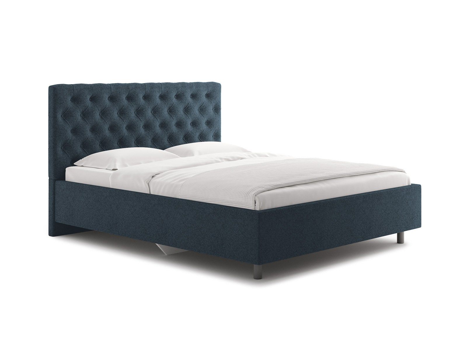 Элегантная интерьерная кровать с изголовьем, украшенным декоративными пуговицами и глубокой пиковкой. Модель изготовлена из ДСП. При необходимости кровать может быть укомплектована подъемным механизмом с бельевым ящиком или трансформируемым основанием Aquarius (размером 160-200).