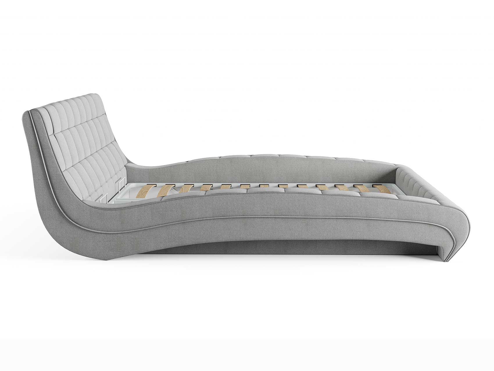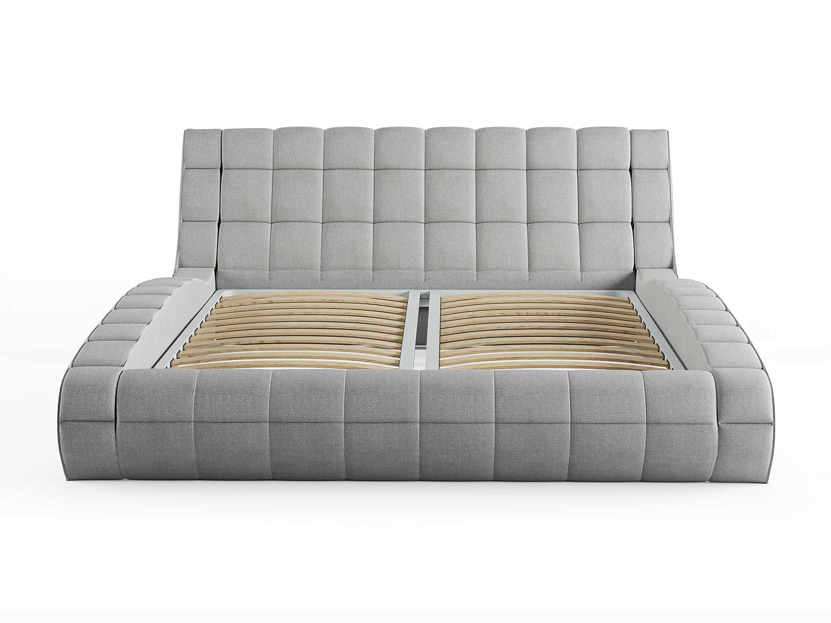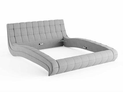 Кровать комплектуется металлическим основанием и подъемным механизмом со вместительным бельевым ящиком. Дно бельевого ящика легко сдвигается для обеспечения уборки под кроватью.
