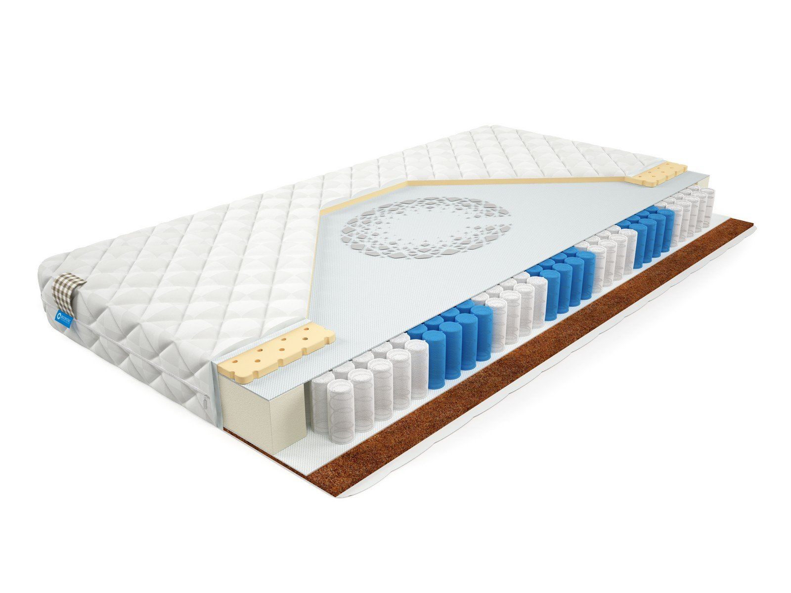 Матрас BioCrystal Duet L - недорогой матрас с латексом и кокосом. Матрас c ортопедическим эффектом на основе семи-зонного пружинного долговечного блока независимых пружин SIlverSpringPocket 7 zone. Данный блок насчитывает 580 металлических пружин на одно спальное место, это оптимальное количество пружин для бюджетного матраса. 7 зональный пружинный блок SSP 580 значительно прочнее обычного блока независимых пружин, и имеет большее количество витков, что, в свою очередь, лучше сказывается на упругости матраса и качестве сна. Матрас насчитывает семь зон жесткости и правильно повторяет изгибы позвоночника во время сна или отдыха. Комфорт матрасу придают 2 сантиметра натурального латекса c 1 стороны, это сторона матраса будет более упругой. Латекс долговечен, очень популярный среди матрасов в России, обеспечивает отличный комфорт. А с другой стороны матраса - 1 сантиметр латексированного кокосового волокна, эта сторона матраса будет немного жестче. Это оптимальный выбор для тех, кто до конца не определился с жесткостью матраса.