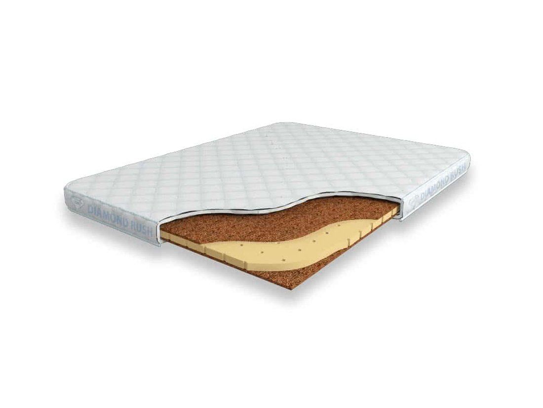 Матрас Diamond Rush Mono Mix Cocos 5 DR является беспружинным, т.е. не имеет в своей основе пружинного блока. В его состав входят одно или несколько чередований слоев латексированной кокосовой койры (1см) и натурального латекса с перфорацией (3см). Такая модель матраса относится к среднежестким и обладает ортопедическим эффектом.