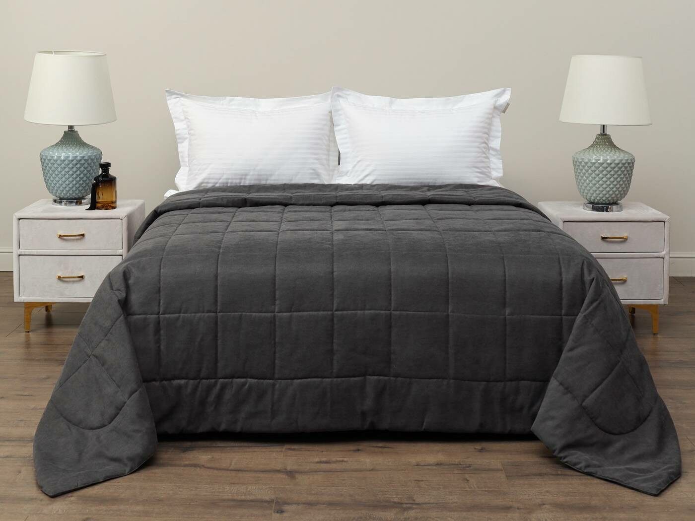 Ткань верха – бархатистый канвас. Канвас отлично себя зарекомендовал как износостойкий и плотный материал обеспечивающий мягкий противоскользящий эффект. Покрывала имеют классическую для канваса машинную стежку «квадрат». Плотная и мягкая фактура ткани канвас не оставляет зацепок, изнаночная сторона выполнена из матового и нежного тика. Такое покрывало украсит собою спальную или гостиную комнату, органично подчеркнет Ваш утонченный стиль.